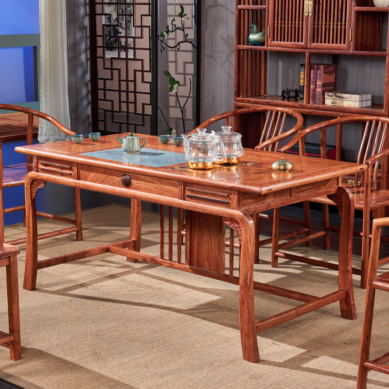 红木茶桌家用实木新中式禅意原木花梨木刺猬紫檀办公室整装小茶台