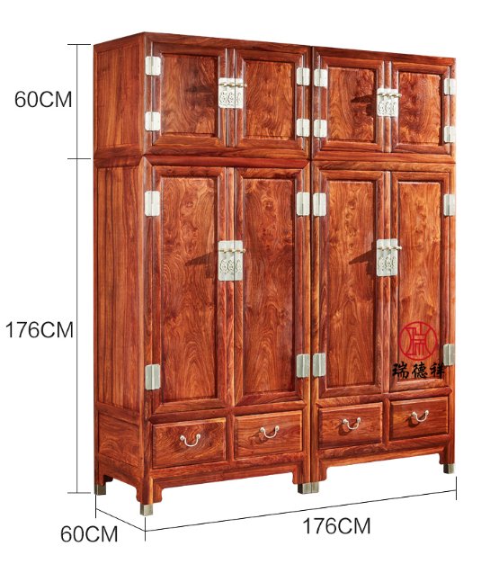 红木家具刺猬紫檀中式衣柜顶箱柜独板明式素面衣柜红木大衣柜四门