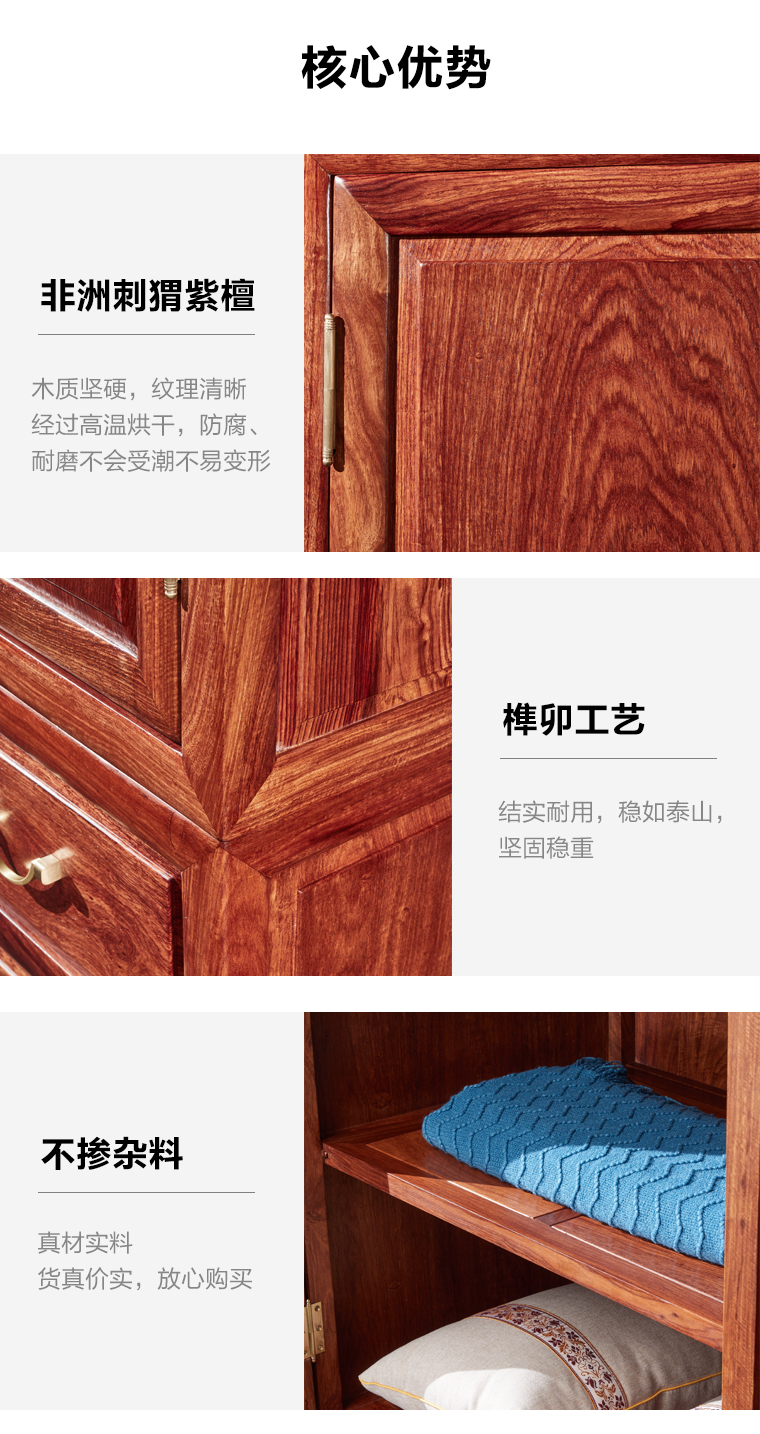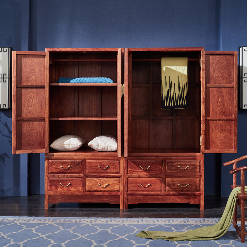 红木衣柜新中式卧室柜花梨木储物柜刺猬紫檀柜子实木衣橱古典家具